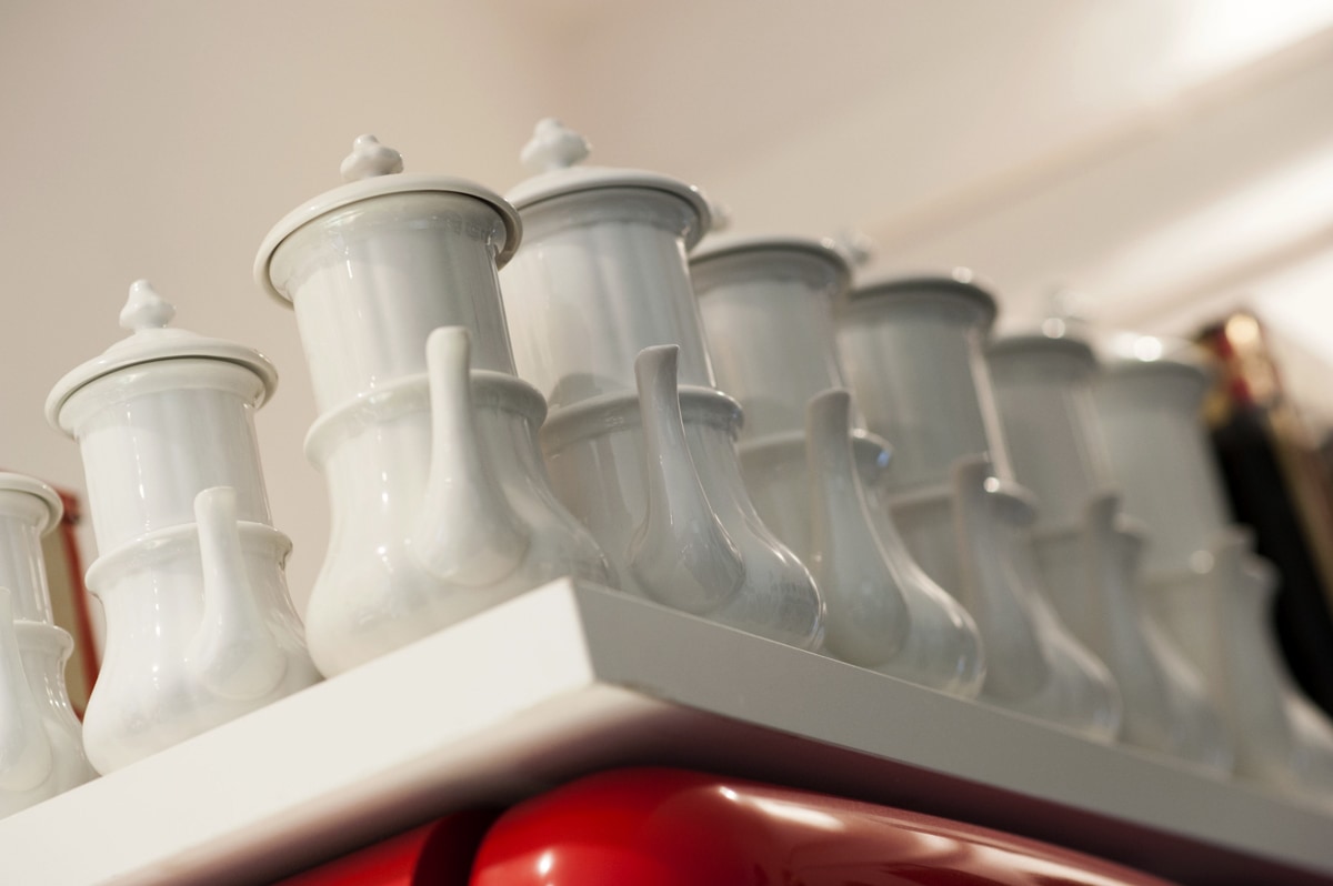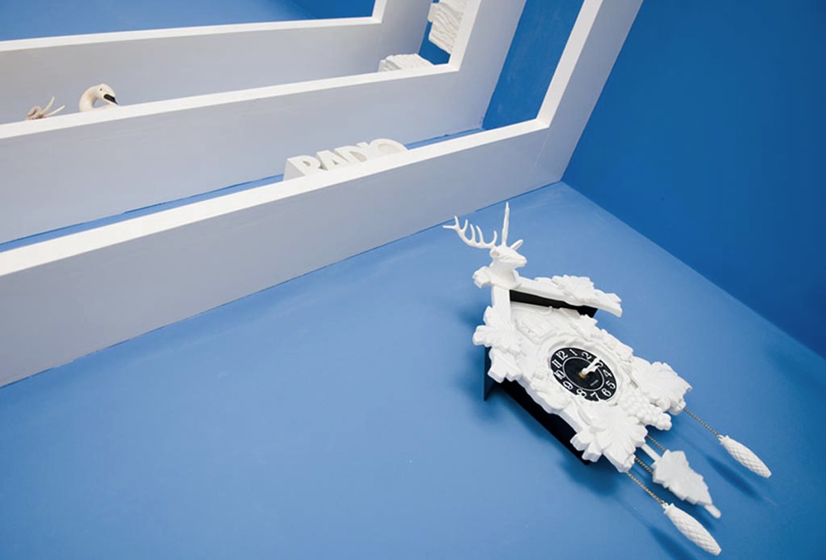 Das Vorzimmer eines Sammlers. Emailschilder, Spazierstöcke, Uhren, Aschenbecher … Alles findet rund um den Billardtisch Platz.