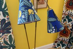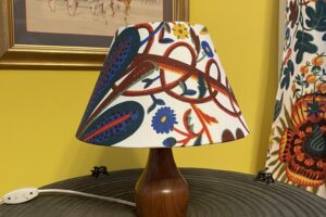 Hier in der Ausführung mit dem Svenskt Tenn Stoff "Teheran Schwarz" entworfen ...