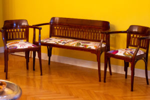 Die Sitzgarnitur wurde 1906 von Otto Wagner für die Postsparkasse entworfen und ...