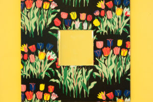 Dieser Spiegel wurde mit dem Svenskt Tenn Stoff "Tulpen schwarz" entworfen von ...