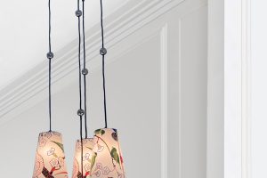 Hier in der Ausführung mit dem Svenskt Tenn Stoff "Teheran Schwarz" entworfen ...