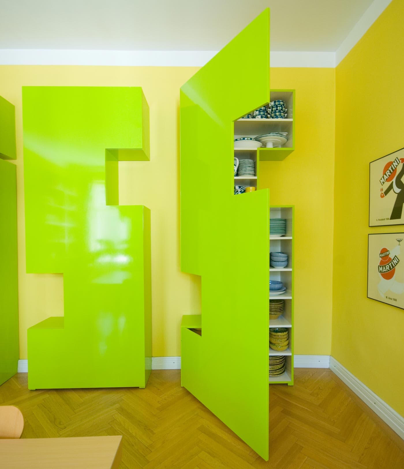 „ISS“ befehlen die „sprechenden“ Geschirrkästen jedem Gast der vor diesen Schränken Platz nimmt.
