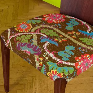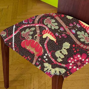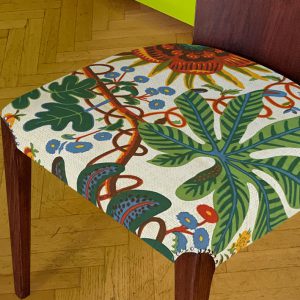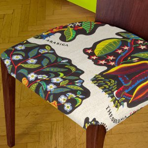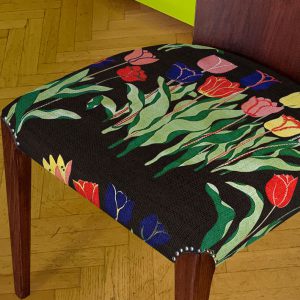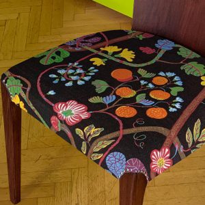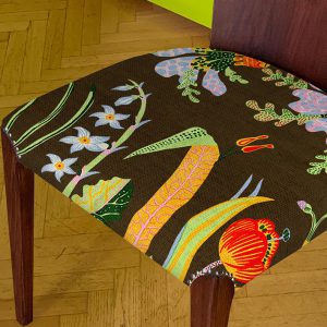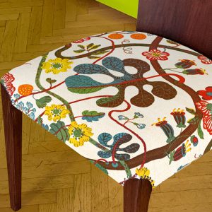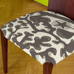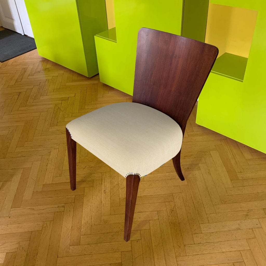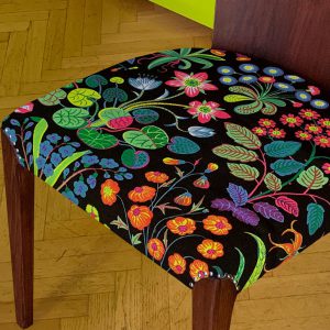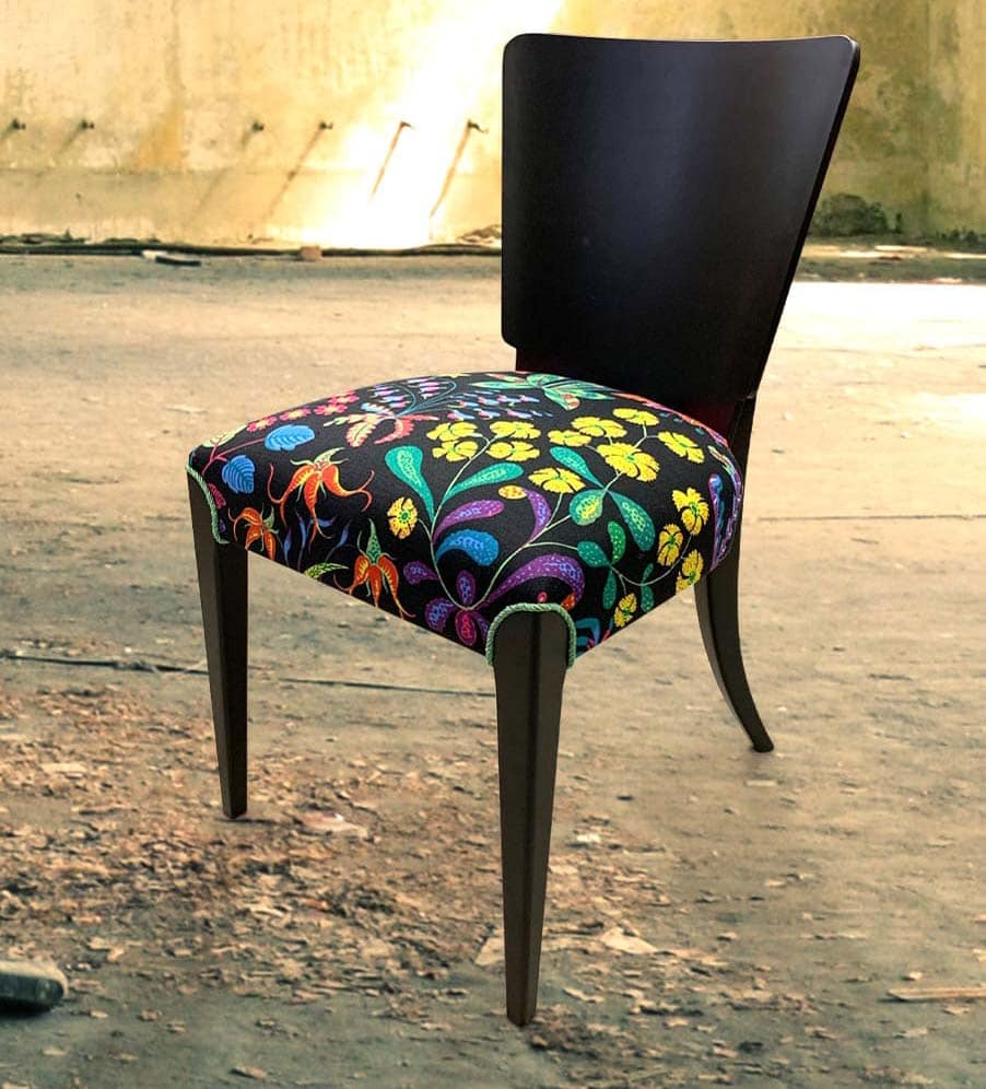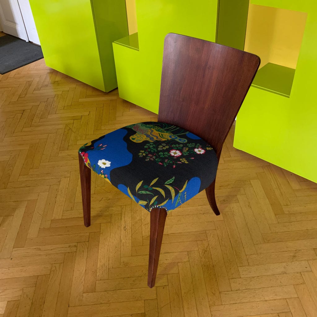 Jindrich Halabala möge es uns verzeihen, dass wir vier Stück seiner Sessel H 214 schwarz matt lackiert haben, aber diese Kombination mit dem Svenskt Tenn Stoff “Unter dem Äquator Schwarz” entworfen von Josef Frank wollten wir unbedingt ausprobieren. Das Ergebnis spricht für sich selbst …