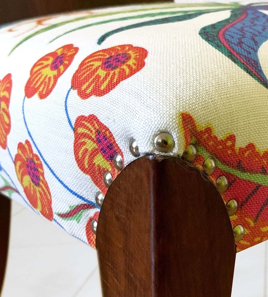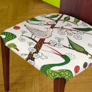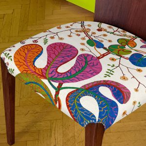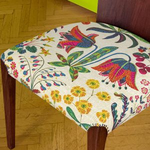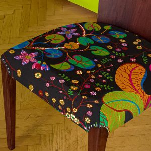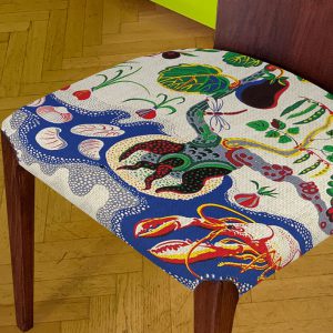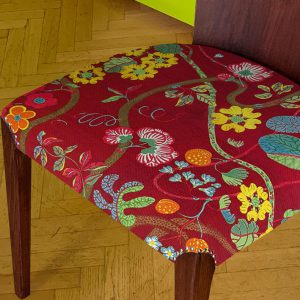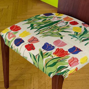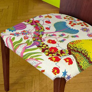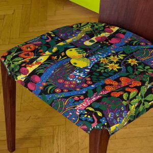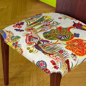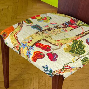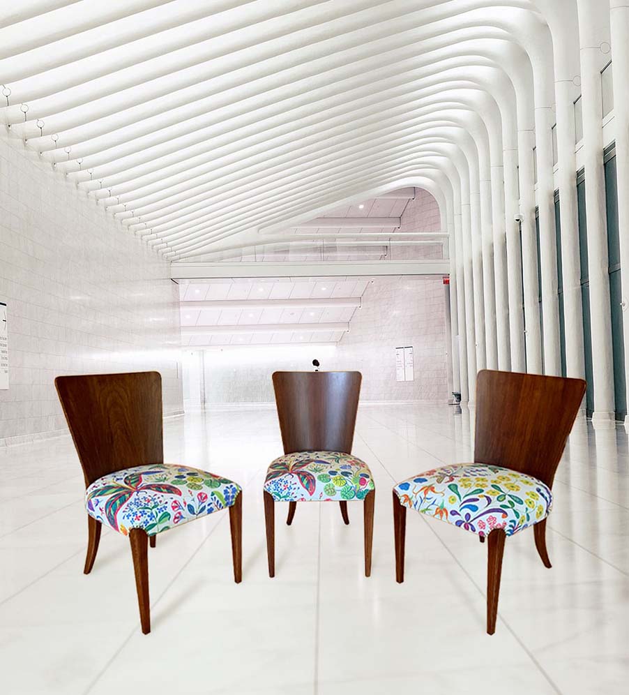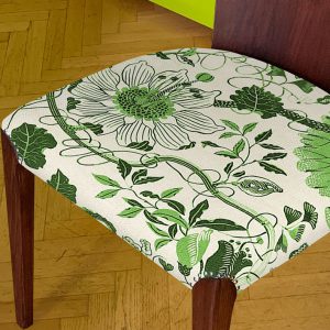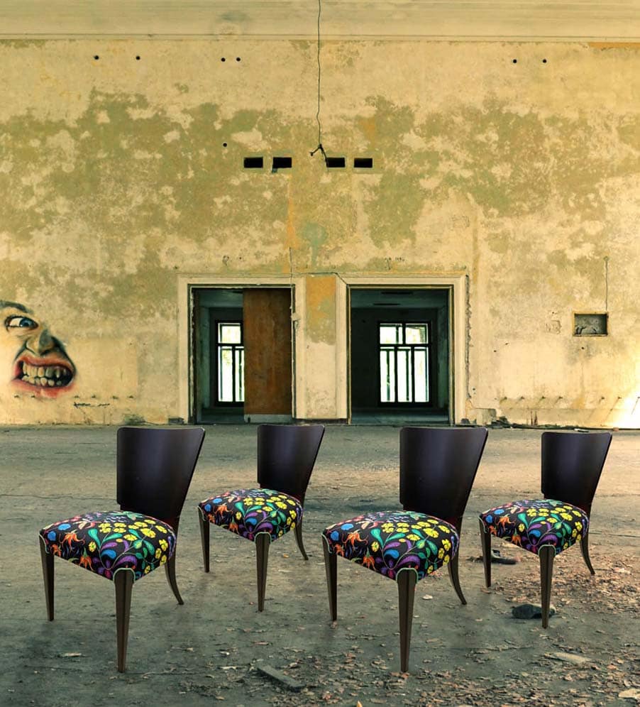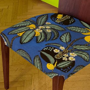 Jindrich Halabala möge es uns verzeihen, dass wir vier Stück seiner Sessel H 214 schwarz matt lackiert haben, aber diese Kombination mit dem Svenskt Tenn Stoff “Unter dem Äquator Schwarz” entworfen von Josef Frank wollten wir unbedingt ausprobieren. Das Ergebnis spricht für sich selbst …