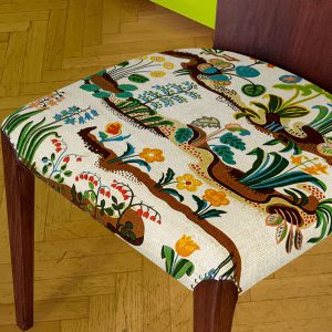 … wurde in den 30er Jahren entworfen und in Tschechien für Thonet hergestellt. Die drei Sessel wurden perfekt restauriert und der Svenskt Tenn Stoff “Unter dem Äquator Weiß” entworfen von Josef Frank verleiht ihnen eine besondere Note. Weitere Stücke, vorerst noch unrestauriert und in jedem Svenskt Tenn Stoff entworfen von Josef Frank tapezierbar, wären verfügbar.