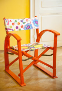 Maße: Höhe 80 cm – Sitzhöhe 46 cm – Tiefe 56 cm – Breite 46 cm