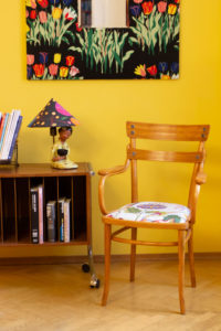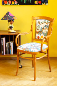 Maße: Höhe 80 cm – Sitzhöhe 46 cm – Tiefe 56 cm – Breite 46 cm